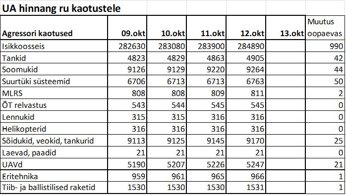 Operatiiv- ja sõjaga seotud info 12. oktoobril