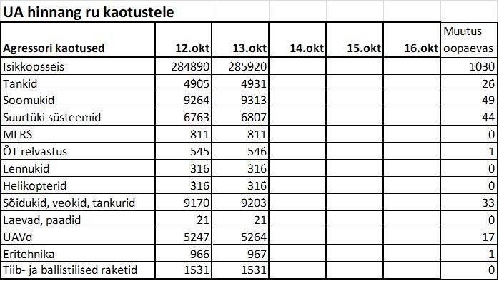 Operatiiv- ja sõjaga seotud info 13. oktoobril