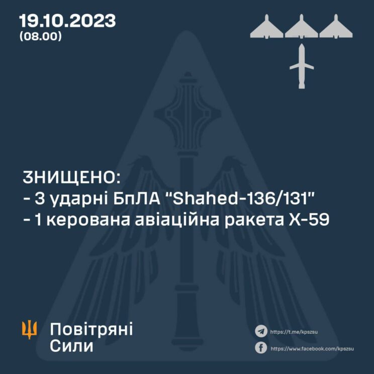 Seekord väga halb UA õhutõrje tulemus 17 õhusihtmärgist hävitati 4. Vene Föderatsioon ründas rakettidega Iskander-M, Shahed droonidega, juhitavate õhu- ja õhutõrjerakettidega.