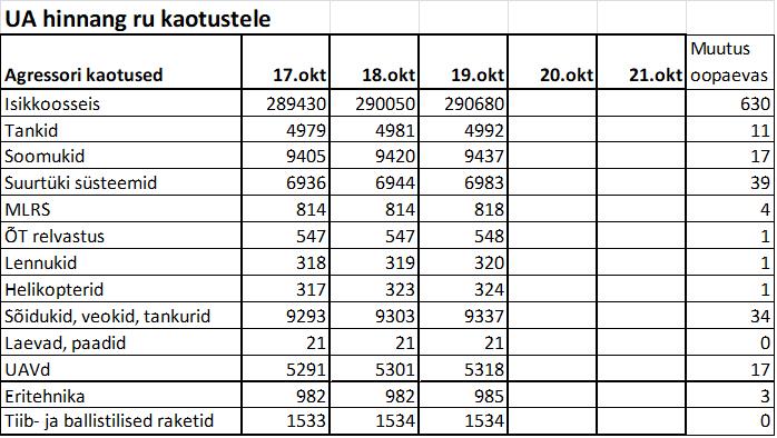 Operatiiv- ja sõjaga seotud info 19. oktoobril
