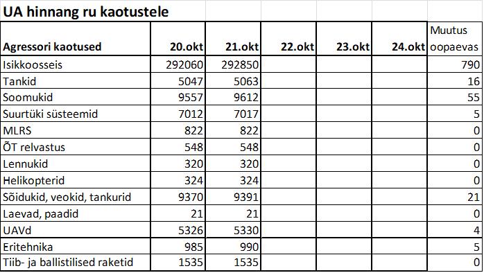 Operatiiv- ja sõjaga seotud info 21. oktoobril