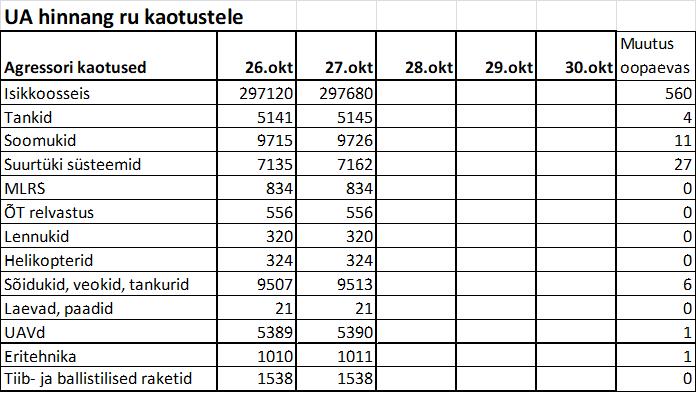 Operatiiv- ja sõjaga seotud info 27. oktoobril