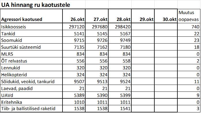 Operatiiv- ja sõjaga seotud info 28. oktoobril