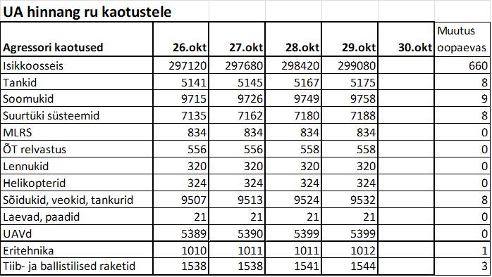 • Roman Svitan käsitles 29. oktoobri uues sõjalises raportis järgmisi teemasid: