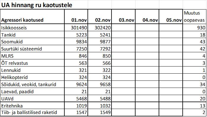 Operatiiv- ja sõjaga seotud info 02. novembril