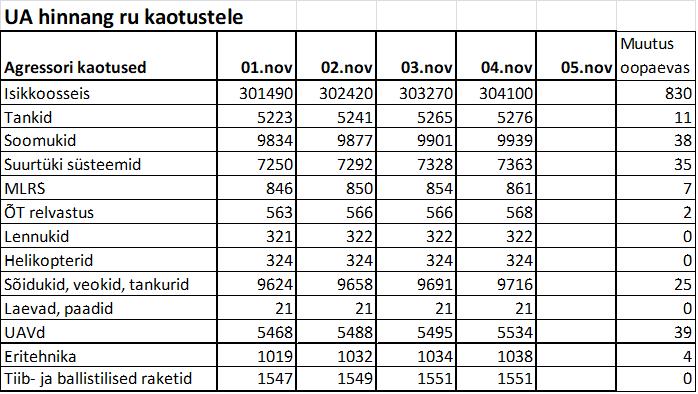 Operatiiv- ja sõjaga seotud info 04. novembril