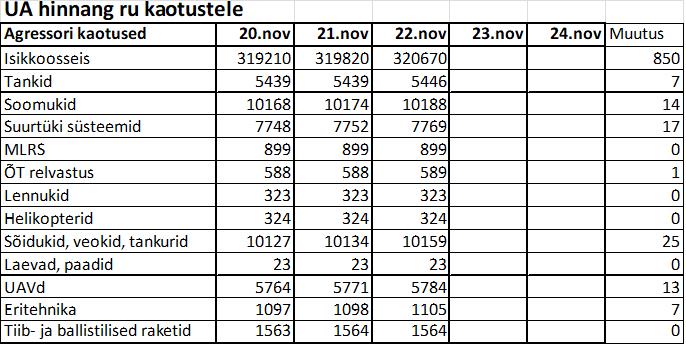 Operatiiv- ja sõjaga seotud info 22. novembril