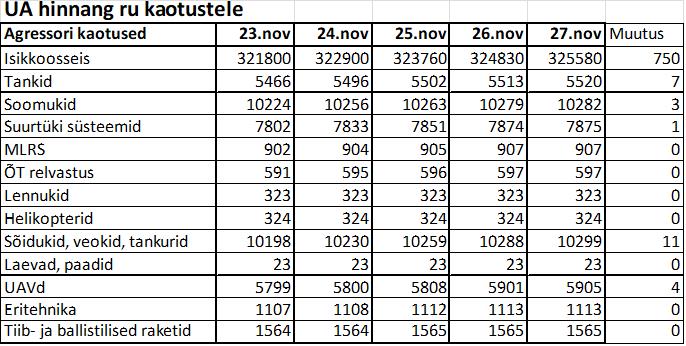 Operatiiv- ja sõjaga seotud info 27. novembril