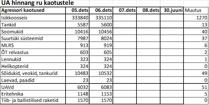 Operatiiv- ja sõjaga seotud info 06. detsembril