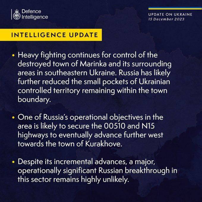 14. detsembril toimusid rasked lahingud Novobahmutivkas, Stepoves ja Avdlivkas, kus UKR tõrjus 23 Venemaa rünnakut. Tonenke, Sieverne ja Pervomaiske juures. UKR purustas veel 22 RU rünnakut, tõrjudes Vene väed suurte kaotustega tagasi.