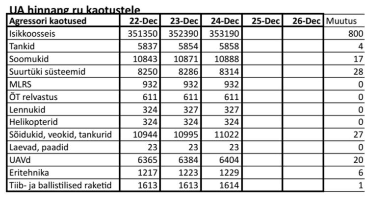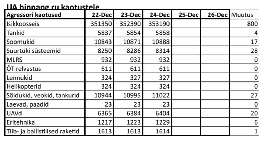 Operatiiv- ja sõjaga seotud info 24. detsembril