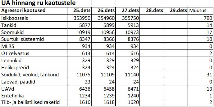 Operatiiv- ja sõjaga seotud info 27. detsembril