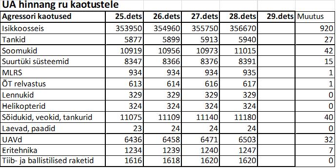 Operatiiv- ja sõjaga seotud info 28. detsembril