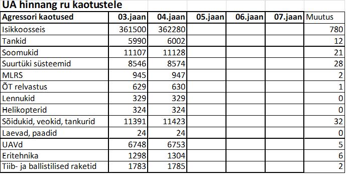 Operatiiv- ja sõjaga seotud info 04. jaanuaril