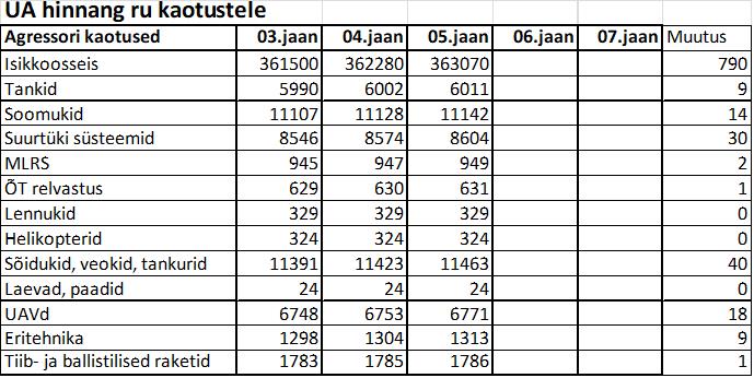 Operatiiv- ja sõjaga seotud info 05. jaanuaril