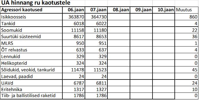 Operatiiv- ja sõjaga seotud info 07. jaanuaril