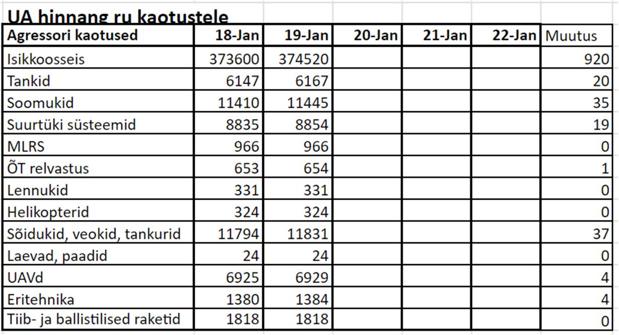 Operatiiv- ja sõjaga seotud info 19. jaanuaril