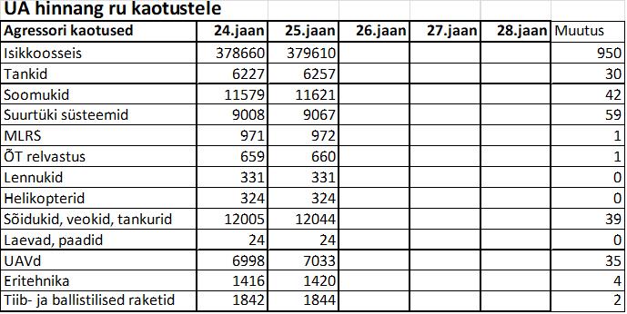 Operatiiv- ja sõjaga seotud info 25. jaanuaril