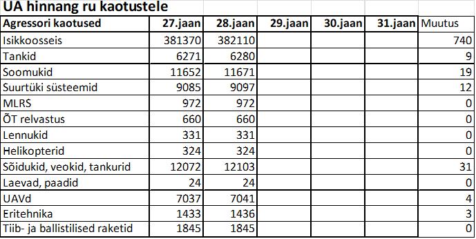 Operatiiv- ja sõjaga seotud info 28. jaanuaril