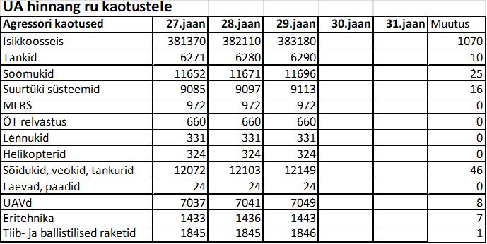 Operatiiv- ja sõjaga seotud info 29. jaanuaril