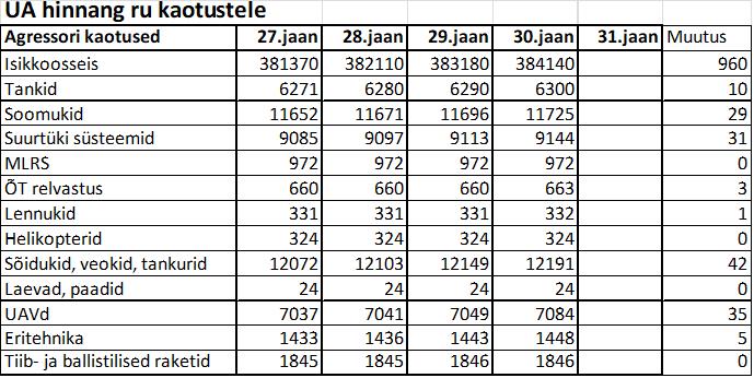 Operatiiv- ja sõjaga seotud info 30. jaanuaril