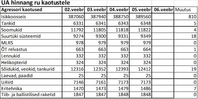 Operatiiv- ja sõjaga seotud info 05. veebruaril