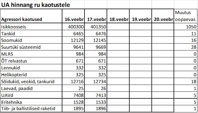 Operatiiv- ja sõjaga seotud info 17. veebruaril