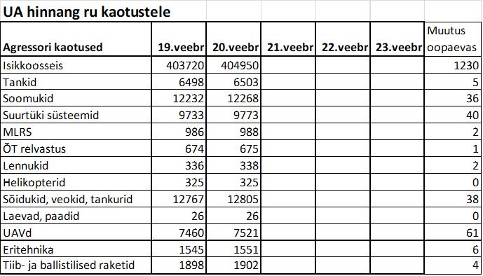 Operatiiv- ja sõjaga seotud info 20. veebruaril