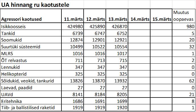 - Roman Svitan käsitles 12. märtsi uues sõjalises kokkuvõttes järgmisi teemasid: