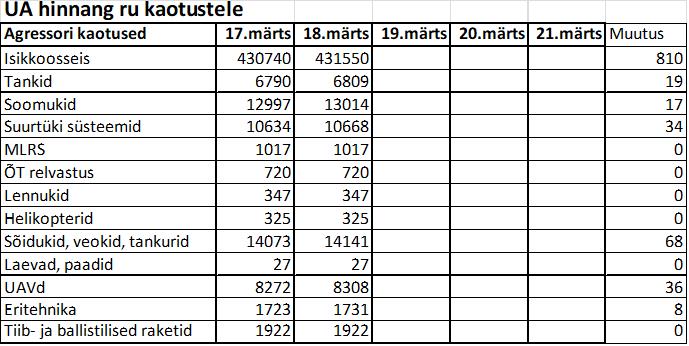 • Roman Svitan käsitles 17. märtsi uues sõjalises kokkuvõttes järgmisi teemasid: