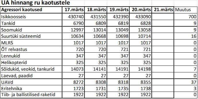 Operatiiv- ja sõjaga seotud info 20. märtsil