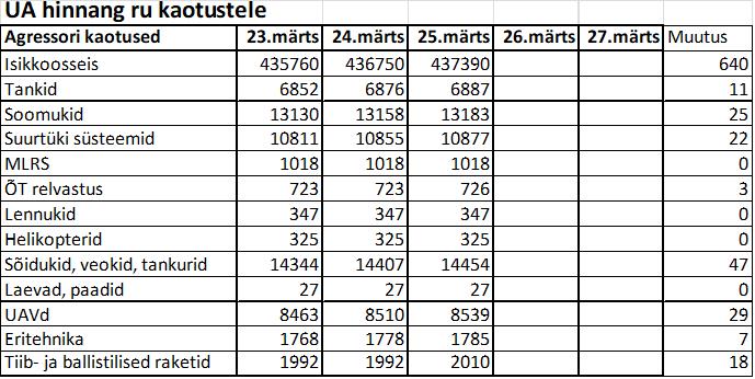 Operatiiv- ja sõjaga seotud info 25. märtsil