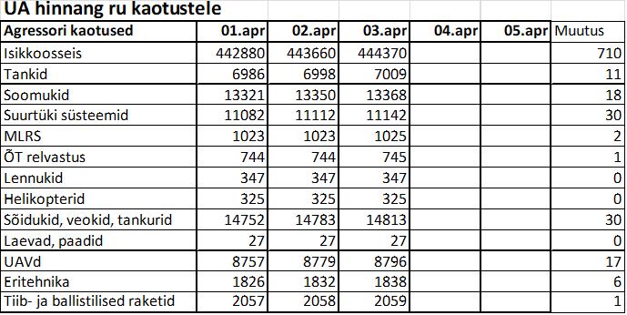 Operatiiv- ja sõjaga seotud info 03. aprillil