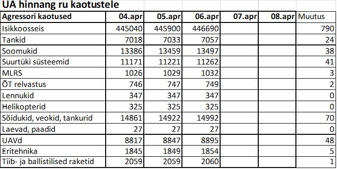 Operatiiv- ja sõjaga seotud info 06. aprillil