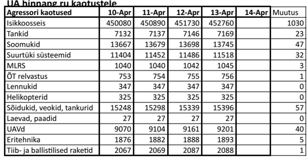 Operatiiv- ja sõjaga seotud info 13. aprillil