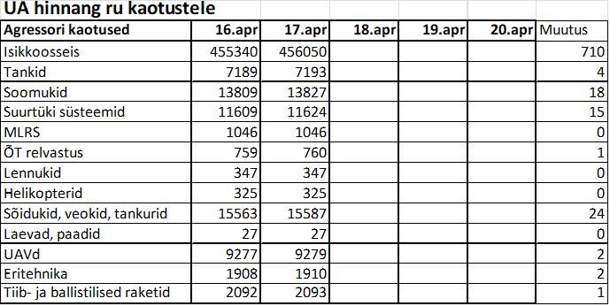 Operatiiv- ja sõjaga seotud info 17. aprillil