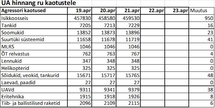 Operatiiv- ja sõjaga seotud info 21. aprillil