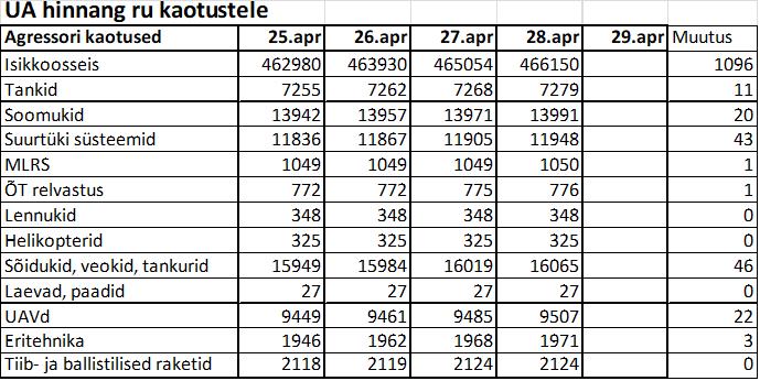 Operatiiv- ja sõjaga seotud info 28. aprillil