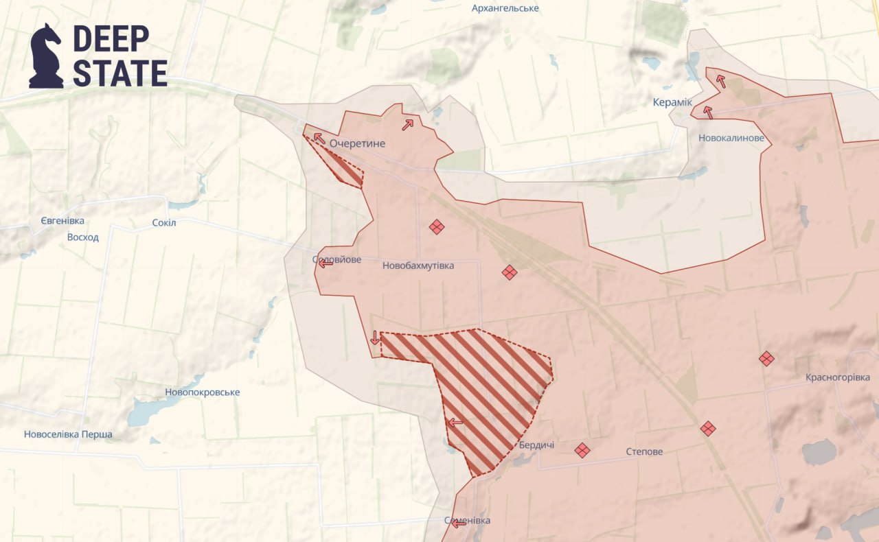 Vene väed jätkavad taktikalise läbimurde kasutamist Avdiivkast põhja- ja loodes ning on edenenud lääne suunas. 27. aprillil tungisid Vene väed edasi Ocheretyne lääneosas, Solovjove edelaosas ja Novobakhmutivkast lõuna pool asuva puujooneni.