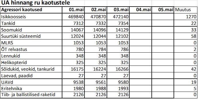 - Roman Svitan käsitles 2. mai uues sõjalises kokkuvõttes järgmisi teemasid: