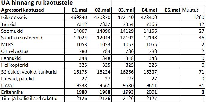 - Andrii Drozda vaatas üle 3. mai seisuga sõjategevuse kaardi ja näitas viimaseid muudatusi rindel, samuti rääkis päeva peamised uudised. Maavägede ülem teatas venelaste plaanidest uue pealetungi ajal. Vaenlane tahab tõesti vallutada Sumy või Harkivi, kuid pole teada, kas sissetungijad suudavad olemasolevate jõududega oma kavatsusi ellu viia. Samal ajal korraldavad venelased kümneid rünnakuid mitmes suunas. Ukraina kaitsevägi aga ohjeldab vaenlast ja põhjustab talle kaotusi tööjõus ja varustuses. Möödunud ööpäeva jooksul toimus 134 lahingukokkupõrget. Kokku andis vaenlane 3 raketi- ja 70 õhulööki, sooritas 116 rünnakut rakettsalgosüsteemidest meie vägede positsioonidele ja asustatud aladele.