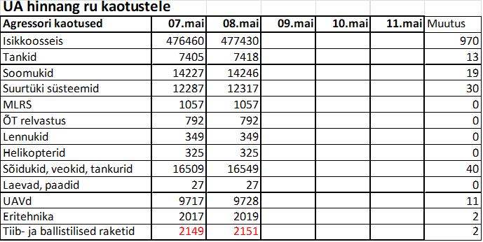 - Roman Svitan käsitles 7. mai uues sõjalises kokkuvõttes järgmisi teemasid: