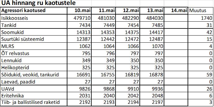 Operatiiv- ja sõjaga seotud info 13. mail
