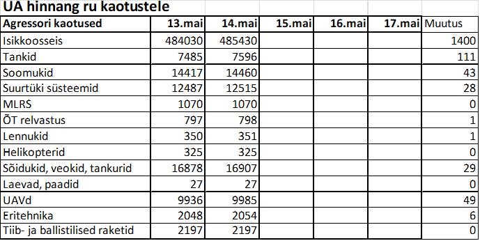 Operatiiv- ja sõjaga seotud info 14. mail