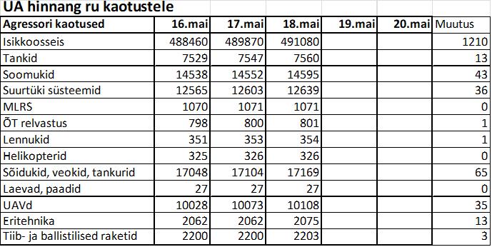 Operatiiv- ja sõjaga seotud info 18. mail