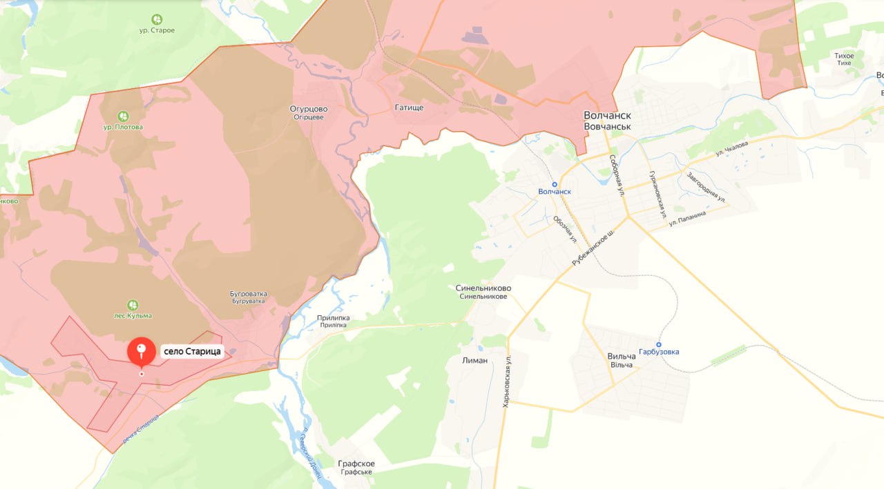 - Agressori Põhja väegrupp väidab, et on saavutanud kontrolli Staritsa küla üle, mis asub hiljuti okupeeritud Bugrovatka kõrval Voltšankast läänes. Seega kontrollivad venelased selles kohas Severski Donetsi ületamist, mis võib võimaldada agressoril Voltšanskit kaitsvate Ukraina relvajõudude tiivale ja tagalasse jõuda.