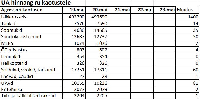Operatiiv- ja sõjaga seotud info 20. mail