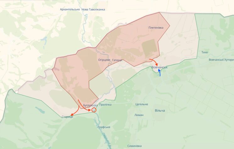 Vovtšanski põhjaosas avastati kaks okupantide jalaväerühma, millest üks asus ühes linna põhjaosas asuvas majas ja teine ​​jõudis lääneosas asuva sillani selle alla peitu pugedes. Kaitsevägi hävitas FPV droonidega vaenlase. Olukord Vovtšanski oblastis on jätkuvalt keeruline. Vaenlane üritab jätkuvalt linna põhjaosas kanda kinnitada, positsioone ehitada ja isegi läände läbi murda. Sündmused on dünaamilised, kaitsevägi hoiab venelasi tule kontrolli all ning üksused tegelevad ka linna puhastamisega. Võitlused jätkuvad piirkonnas Gatištše ja Staritsõ. Liptsõ asula piirkonnas kordavad okupandid edutult oma katseid külla pääseda. Lahingud jätkuvad Hlybokoy ja Lukyantsi piirkonnas.