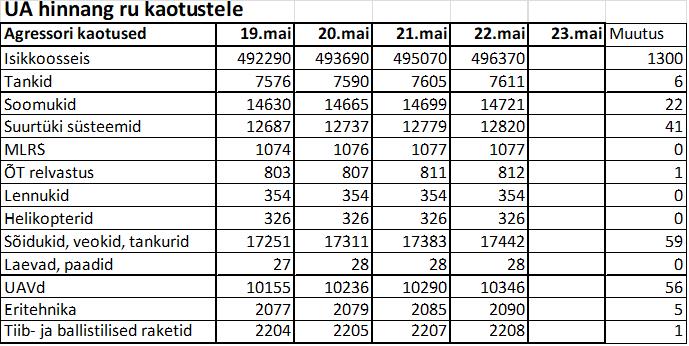 Operatiiv- ja sõjaga seotud info 22. mail