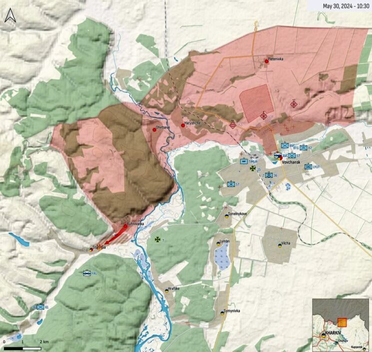 Vene väed jõudsid Harkivi oblasti Buhruvatkast lääne poole ja jõudsid peaaegu lähedalasuva Starytsya asula keskmesse. Ukraina kontrollib 70% Harkivi oblastis Vovtšanskist, linnas jätkuvad tänavalahingud.